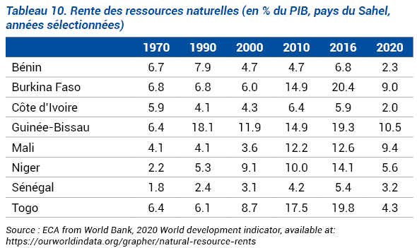d’accaparement des rentes associées à l’exploitation de ces ressources naturelles dans les pays de l’Union déterminent l’influence de la gestion de ces ressources sur l’évolution géologique et posent de véritables problèmes de gouvernance et des conflits dans la région.