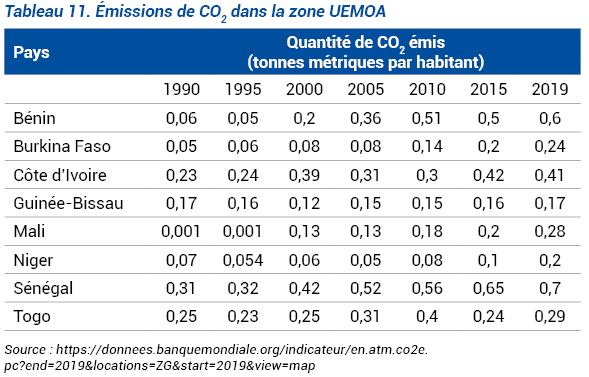 Malgré l’existence de tendances lourdes, le système UEMOA subit des mutations qui impactent son évolution. Ce sont l’augmentation du niveau d’émission du CO2, de 1,141 Tonne métrique / habitant en 1990 à 2,89 tonnes métriques / habitants en 2019 (https://donnees.banquemondiale.org/indicateur/en.atm.co2e.pc?end=2019&l… chiffres), l’intérêt marqué pour la promotion d’une agriculture moderne et la mise en œuvre de projets de développement dans le secteur du vivrier.