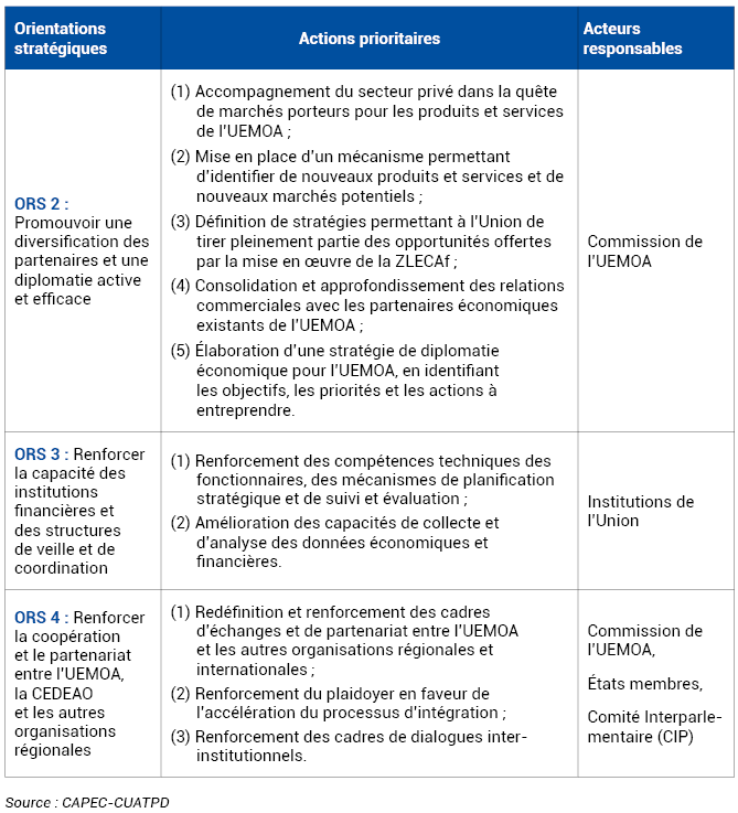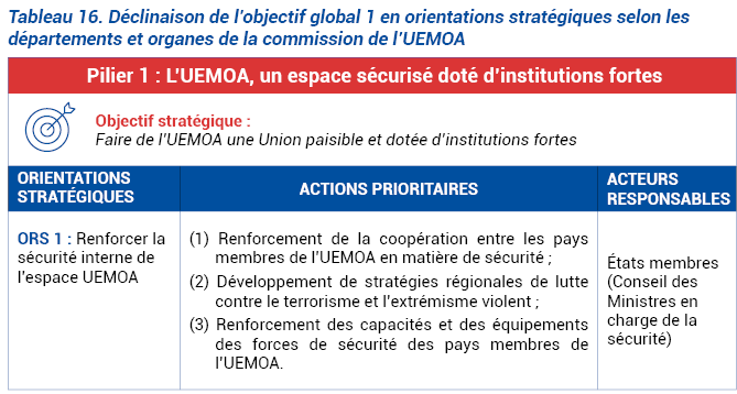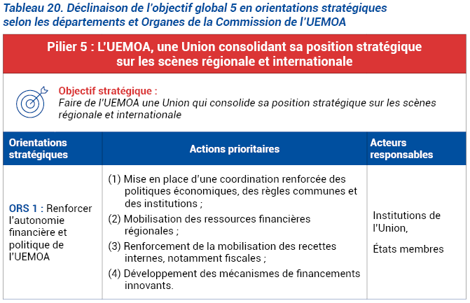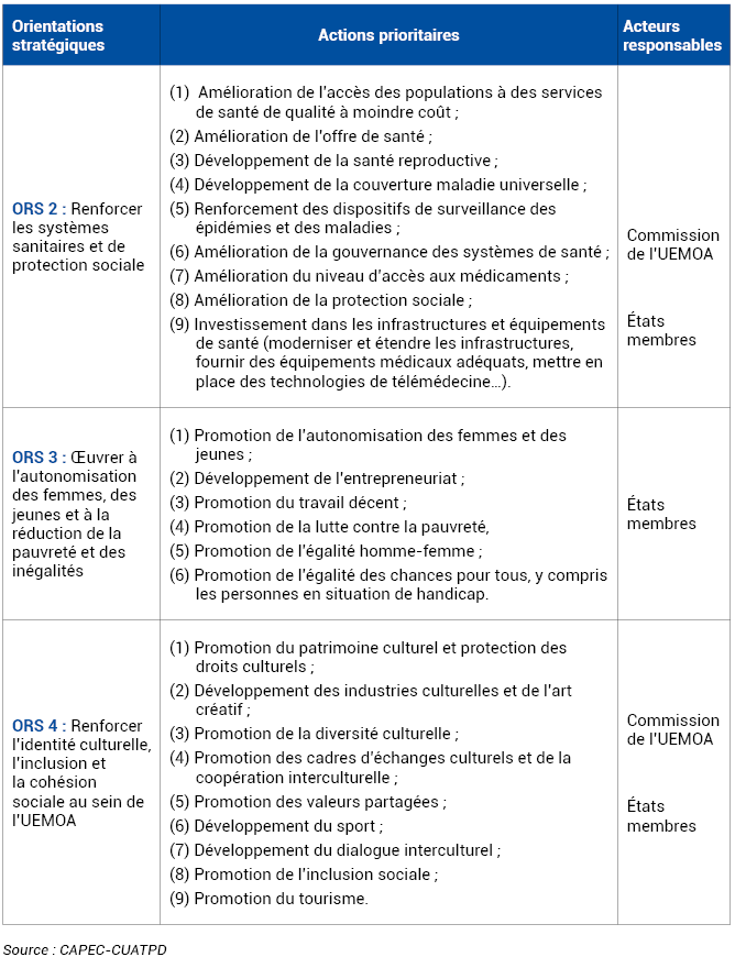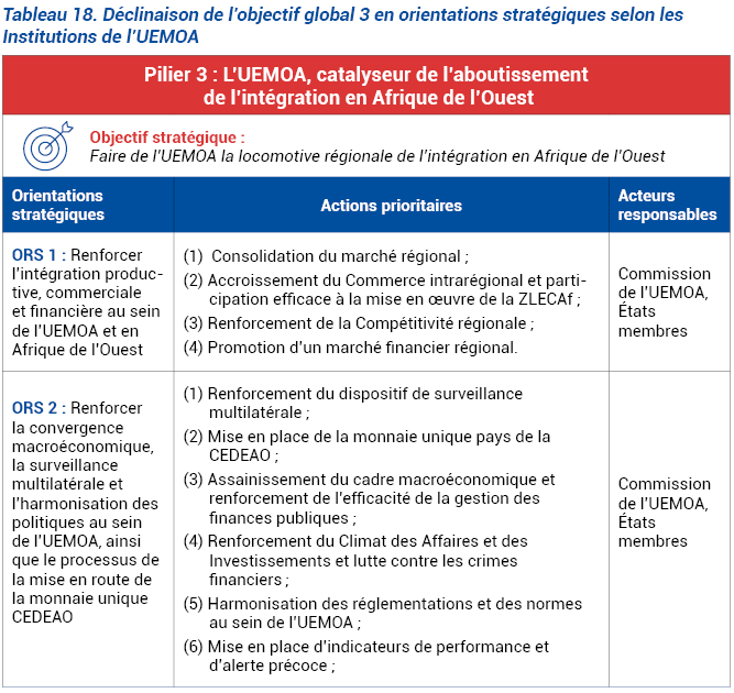 L’UEMOA réalisera cet objectif à travers les orientations stratégiques présentées dans le tableau ci-après.