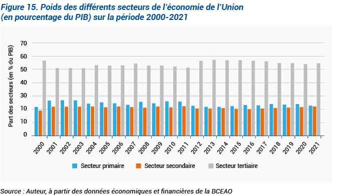 Les facteurs clés du changement structurel sont l’approfondissement du système financier de l’Union et sa capacité à mettre en œuvre des innovations financières pour répondre aux besoins des PME et de la plus petite entreprise (formelle ou informelle) tout en soutenant l’évolution actuelle des start-ups ; le positionnement géostratégique de l’Union face à un ordre économique mondial en mutation ; la transformation numérique et le rattrapage technologique pour accroître les gains de productivité dans la production de biens manufacturés et de services de qualité ; la maîtrise des pandémies, du changement climatique, le terrorisme, les disparités entre pays de l’Union en matières d’infrastructures et de capacités énergétiques ; d’utilisation efficace de nos ressources naturelles importantes dans le cadre d’un développement accéléré de l’économie verte et circulaire.