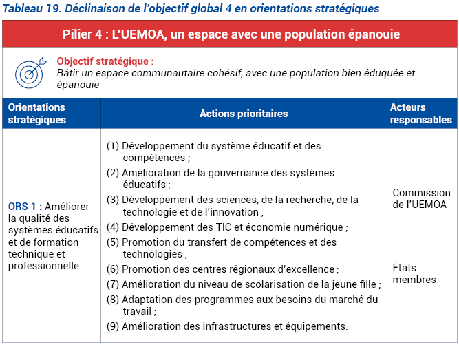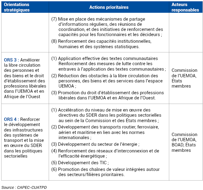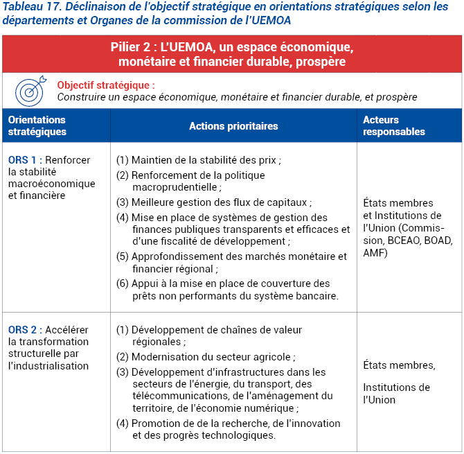 L’UEMOA réalisera cet objectif à travers les orientations stratégiques présentées dans le tableau ci-après.